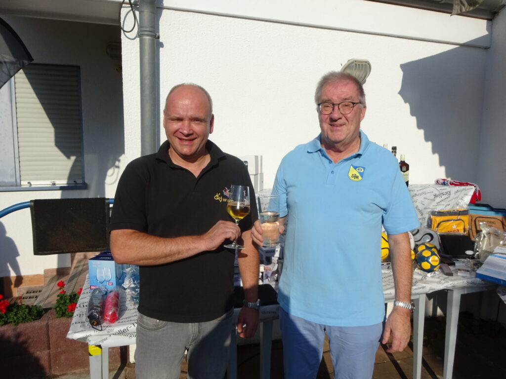 Ein Prosit auf das „Sommerleuchten“ mit CKV-Präsident Rüdiger Koch (l.) und dem DJK-Vorsitzenden Dr. Uwe Gierlich. Foto: Oliver Gehrig
